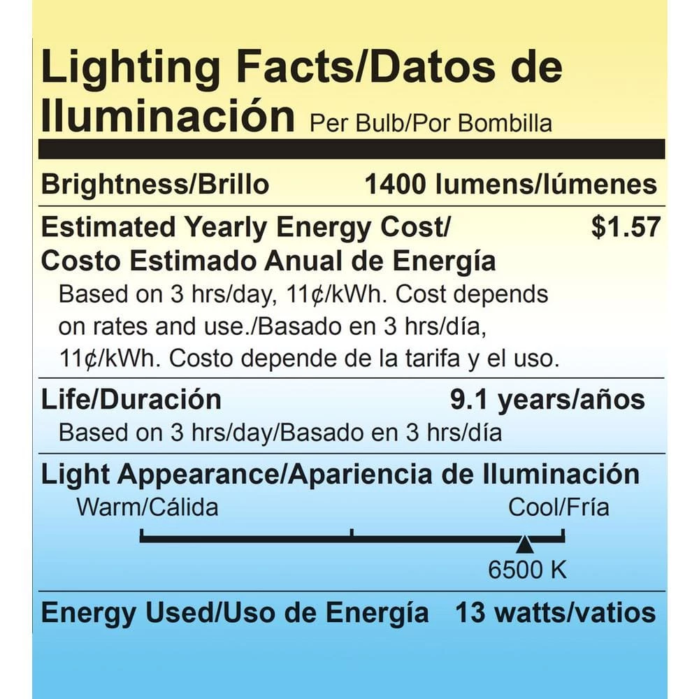 - Energy used: 13-Watt (equivalent to a 100-Watt standard incandescent light bulb)