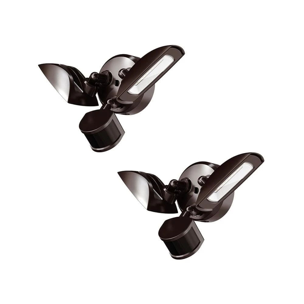 - Twin heads have motion sensors and precision optics that cast wide beams for maximum light output and coverage