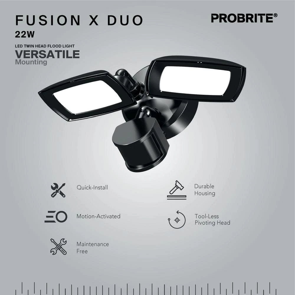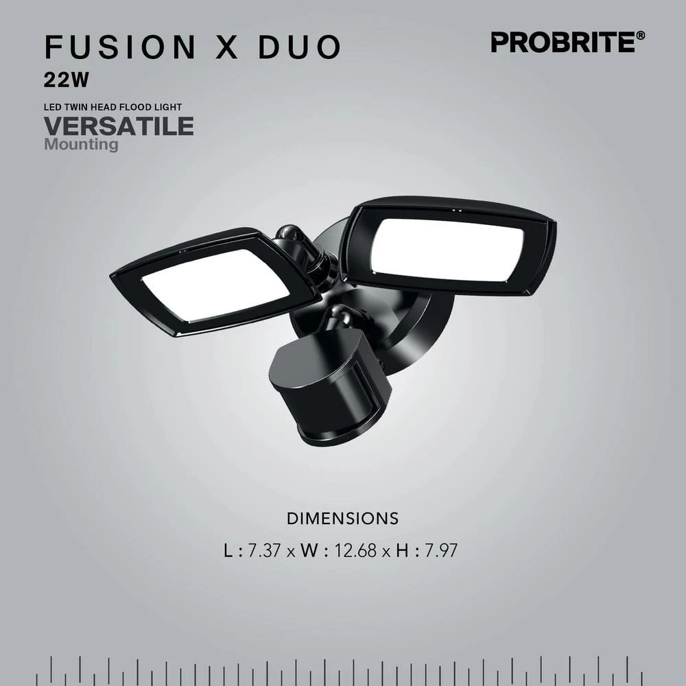 This motion-activated security light shines 3000 lumens of 4000K bright white light on a building perimeter, landscape or sign using only 30-Watts. Installation is hands-free. Mounted 8 ft. to 15 ft. high on a wall, eave or pole or on the ground, the fixture casts a wide beam for maximum coverage. The rugged die-cast aluminum housing is coated with a commercial-grade bronze powder to resist corrosion for 50,000 hours of maintenance-free use. The efficient LED uses 85% less energy than a 200-Watt incandescent bulb, saving you $55 a year on utility bills, well beyond PROBRITE’s 5-year warranty.