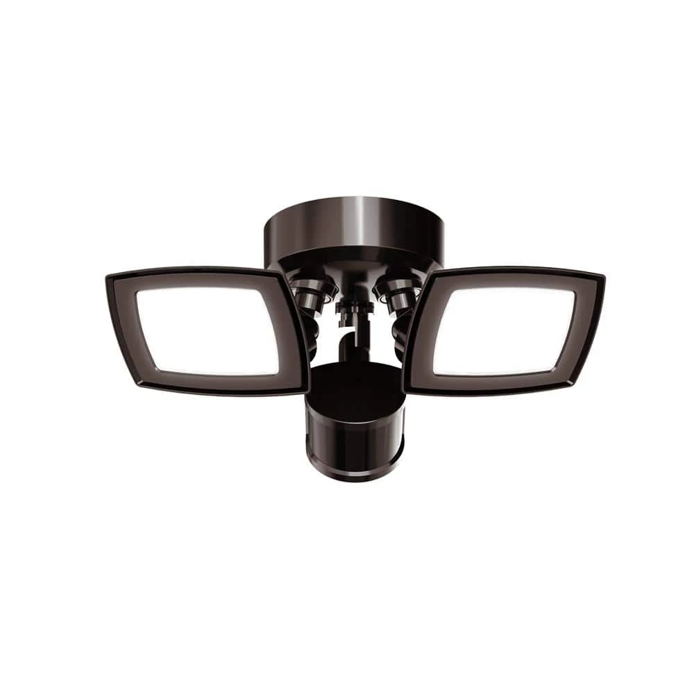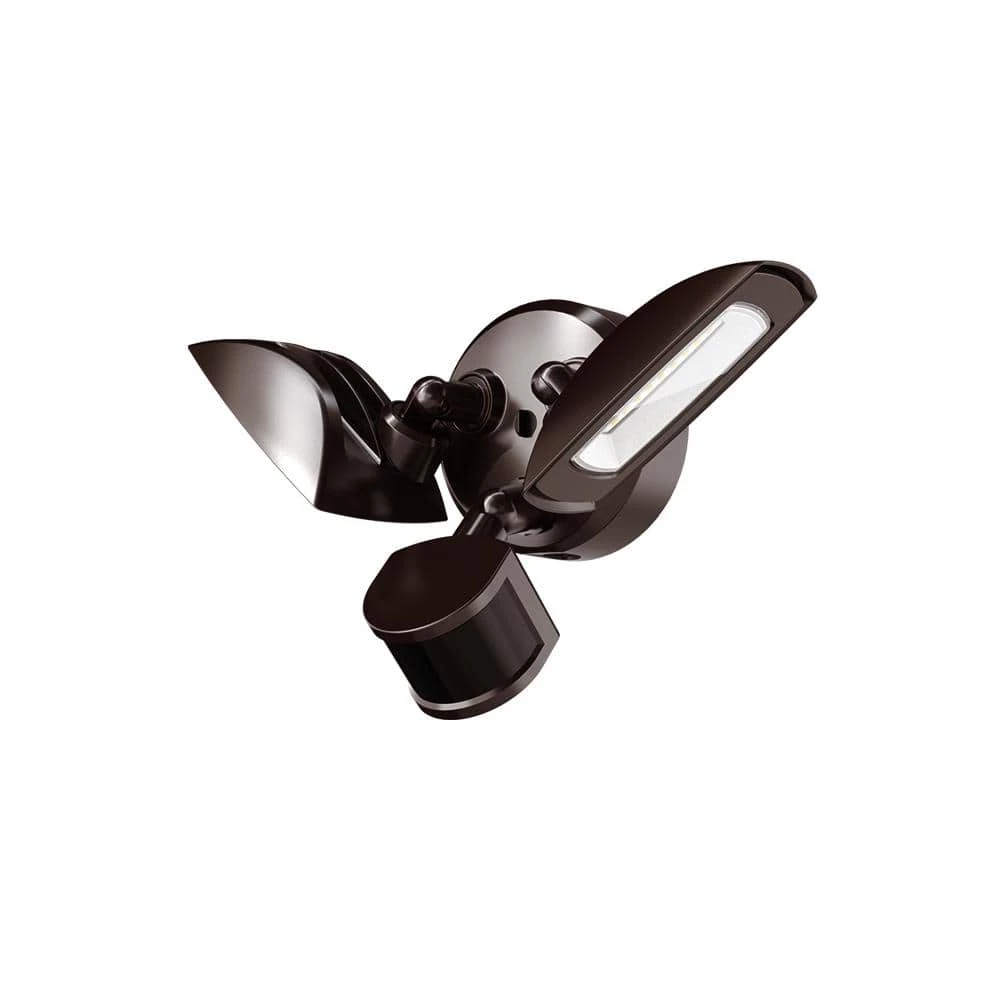 - Twin heads have motion sensors and precision optics that cast wide beams for maximum light output and coverage