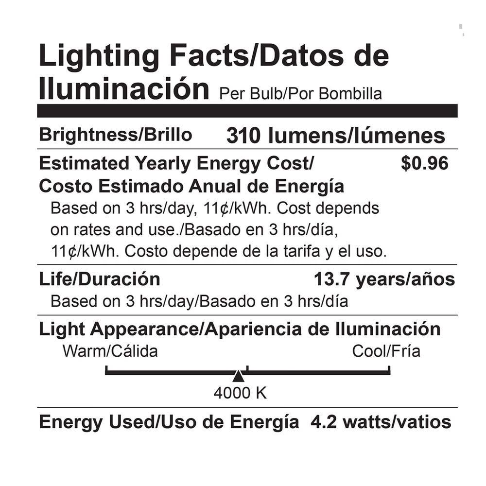 - Energy used: 4.2-Watt (equivalent to a 35-Watt standard incandescent light bulb)