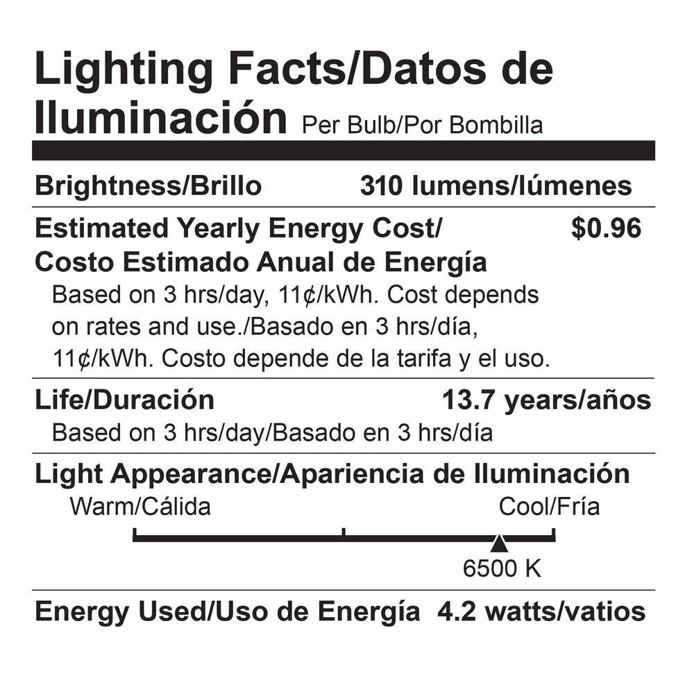 - Energy used: 4.2-Watt (equivalent to a 35-Watt standard incandescent light bulb)