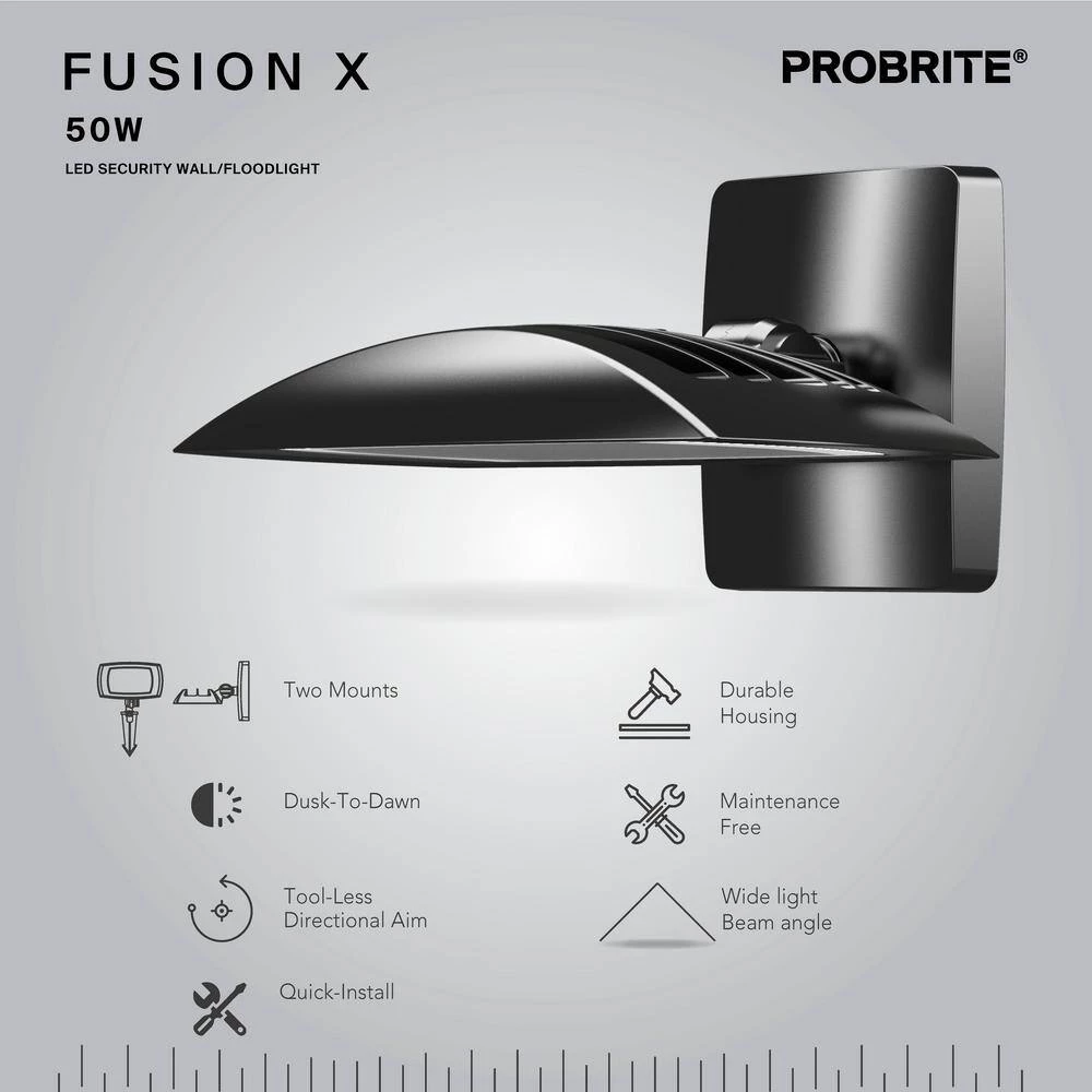 Having adequate outdoor lighting doesn’t just make your commercial or residential property look good but is also a great safety precaution. PROBRITE’s FUSION X Dark Bronze 45-Watt LED Wall Pack offers 4000K of bright white light and emits 5000 Lumens of brightness, which is powerful enough to illuminate any space. It can be used to light up a warehouse, large patio, backyard space, driveways and even entryways. What makes this LED wall pack an ideal choice is it uses photocell technology to improve efficiency and minimize maintenance. Owners have the option to use the automatic dusk to dawn outdoor light feature or the manual ON/OFF feature. With integrated LEDs, this wall pack boasts over 50,000-hours of life. This fixture also meets the highest design and environmental standards to ensure your investment is worth the cost. Should you have any questions regarding installation, replacement parts or upgrade options, please contact the PROBRITE lighting specialist directly at support.