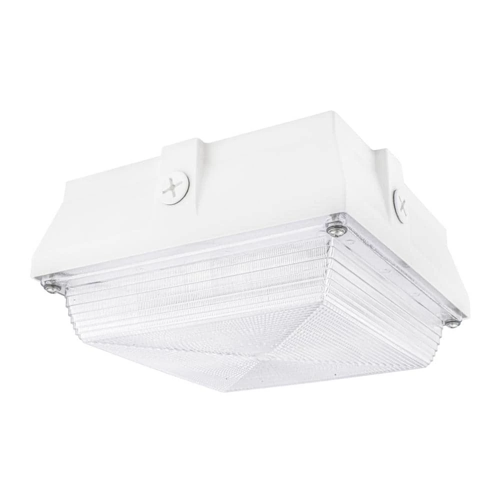 Powerful, yet energy-efficient, this ceiling/canopy security light beams 5200 Lumens of bright white light on residential or commercial outdoor spaces using a 50-Watt LED. The fixture’s impact-resistant polycarbonate UV lens reduces glare, making it neighbor-friendly. Installation is hands-free. Mount the light anywhere using conduit entries conveniently located on all 4 sides. The heavy-duty, die-cast aluminum housing is coated with a commercial-grade white powder to stand up to corrosion for more than 50,000 hours of maintenance-free use. Best of all, the LED uses 80% less energy than standard bulbs, saving you $75 annually on utility bills well beyond PROBRITE’s 5-year warranty.