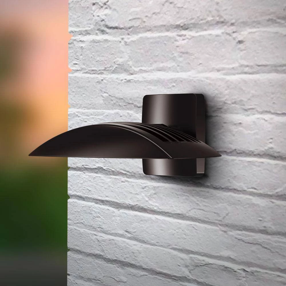 - Corrosion-resistant, die-cast aluminum rear housing with commercial-grade bronze finish; vandal resistant UV-stabilized polycarbonate lens