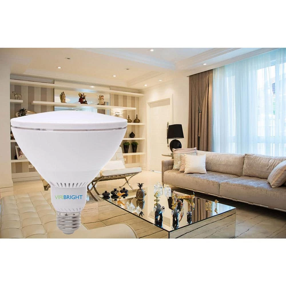 Our PAR38 LED flood light bulb is fully dimmable (may require LED dimmer). They are great for both commercial and residential general applications. Our high-performance line of LED floodlights features our innovative ViriTrue technology. This technology includes 90+ CRI and high lumen per watt output. We offer PAR38 bulbs in three primary color temperatures Warm White (2700K), Cool White (4000K) and Deluxe Daylight (6500K). We have the right choice for any setting. If you are a contractor, builder, trader, interior designer, renovator or a do it yourself type our bulbs will fit your project. We are committed to bringing world-class light into your everyday life. Viribright’s lighting innovations have enabled our products to exceed industry standards by achieving high CRI and maximum energy efficiency in each of our lines and designs. Our new patented and proprietary remote phosphor technology “ViriTrue White” reaches 95+ high CRI with exceptionally preserved efficacy.
