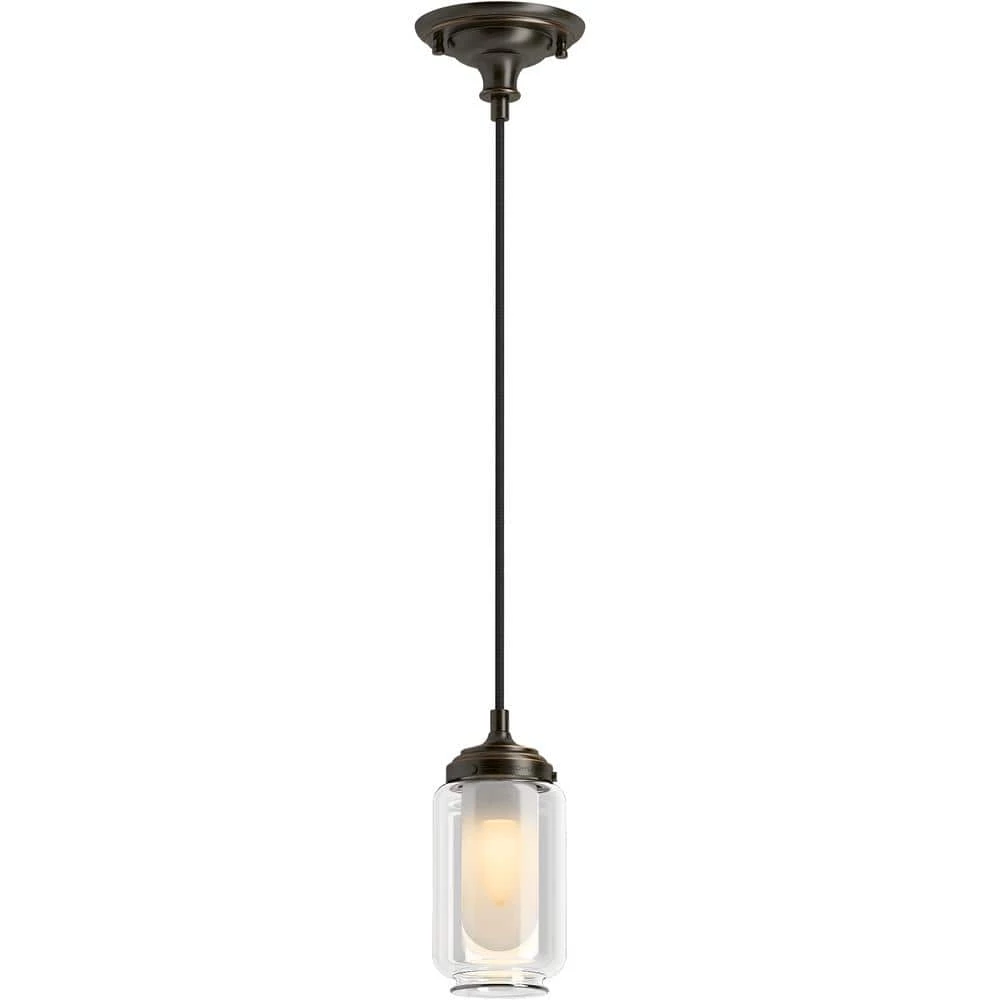 - Versatile design that features a frosted shade surrounded by a clear glass shade