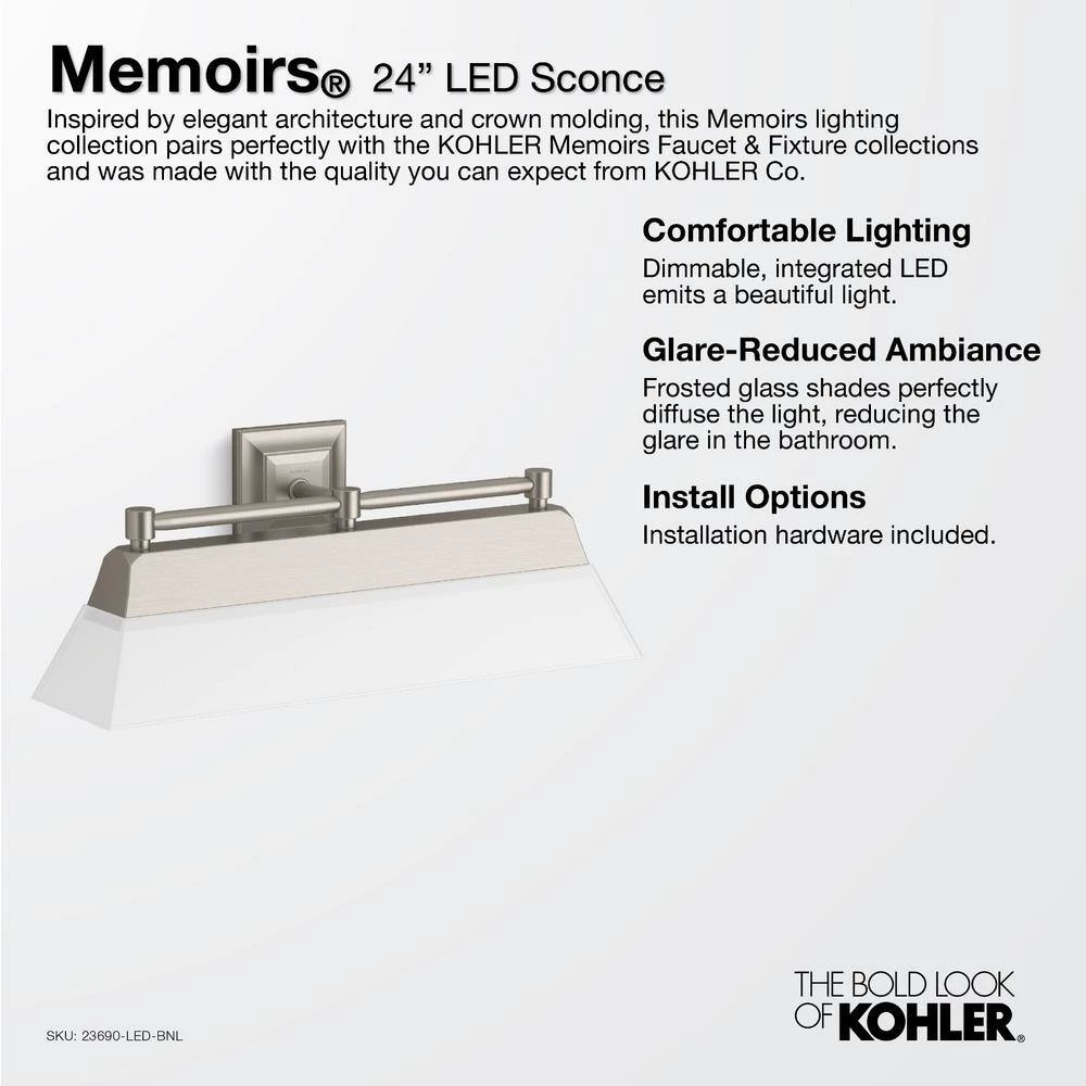 A simple minimalist collection. It is inspired by elegant architecture and crown molding, this Memoirs lighting collection pairs perfectly with the KOHLER Memoirs Faucet and Fixture collections and was made with the quality you can expect from KOHLER Co. It comes with a 1-year limited warranty.