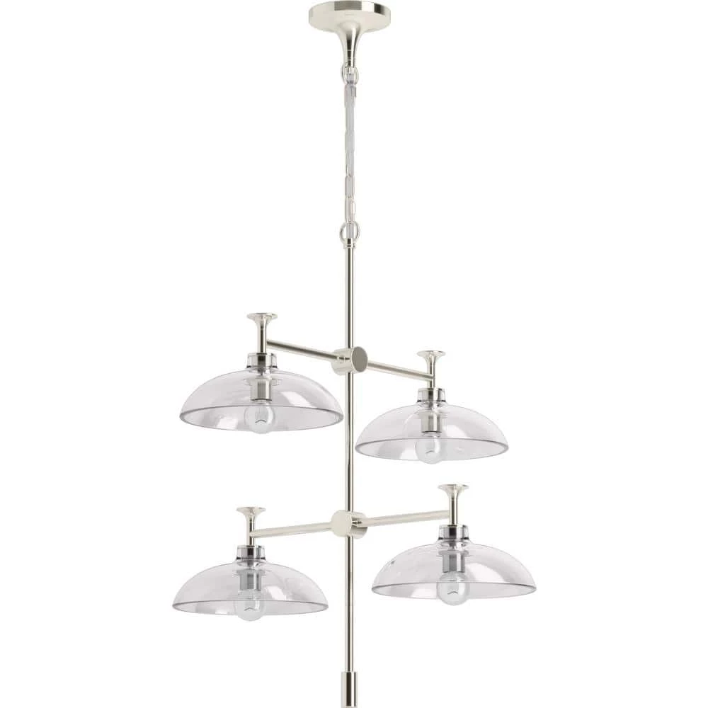 - Domed glass shades extend from intersecting rods and flared metal bases in contemporary designs fit for any room