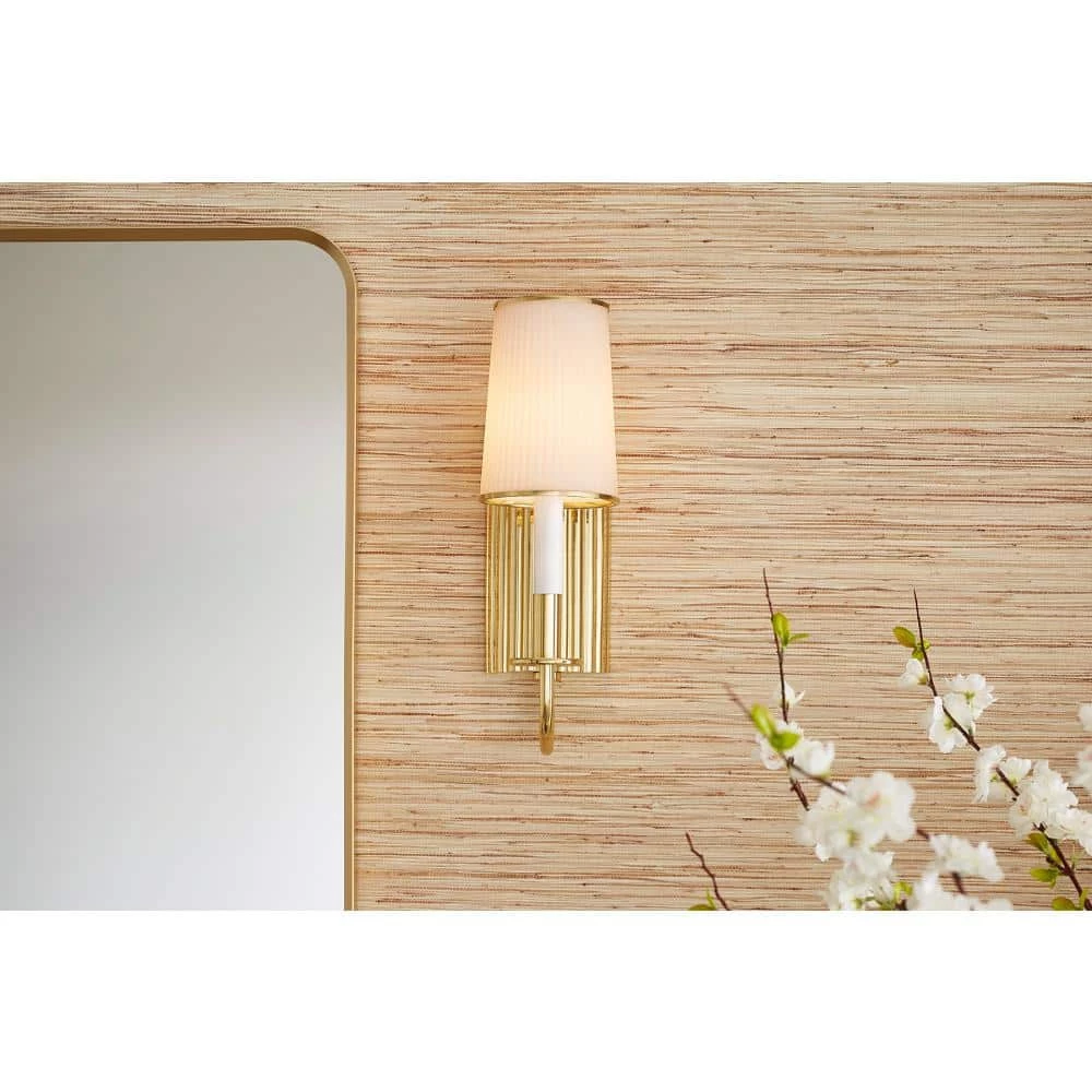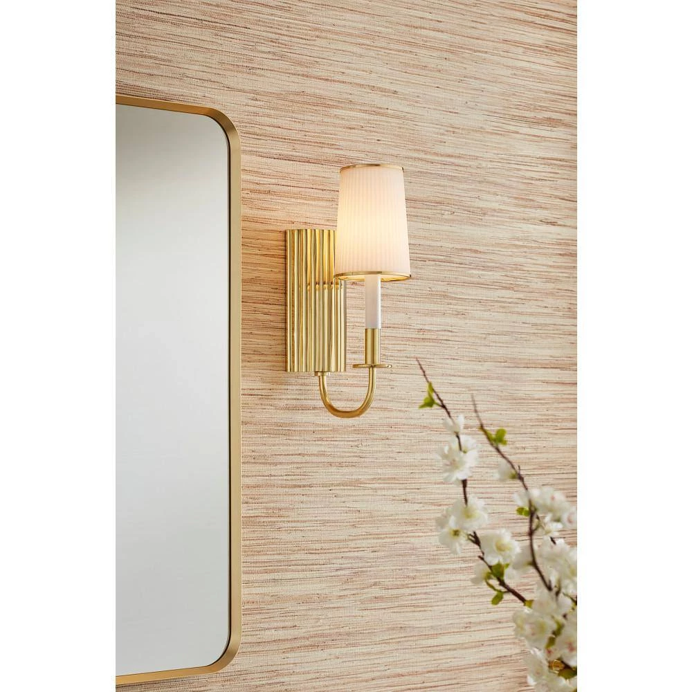 - Scalloped metal details are juxtaposed against a delicate matte ribbed glass shade for dramatic elegance